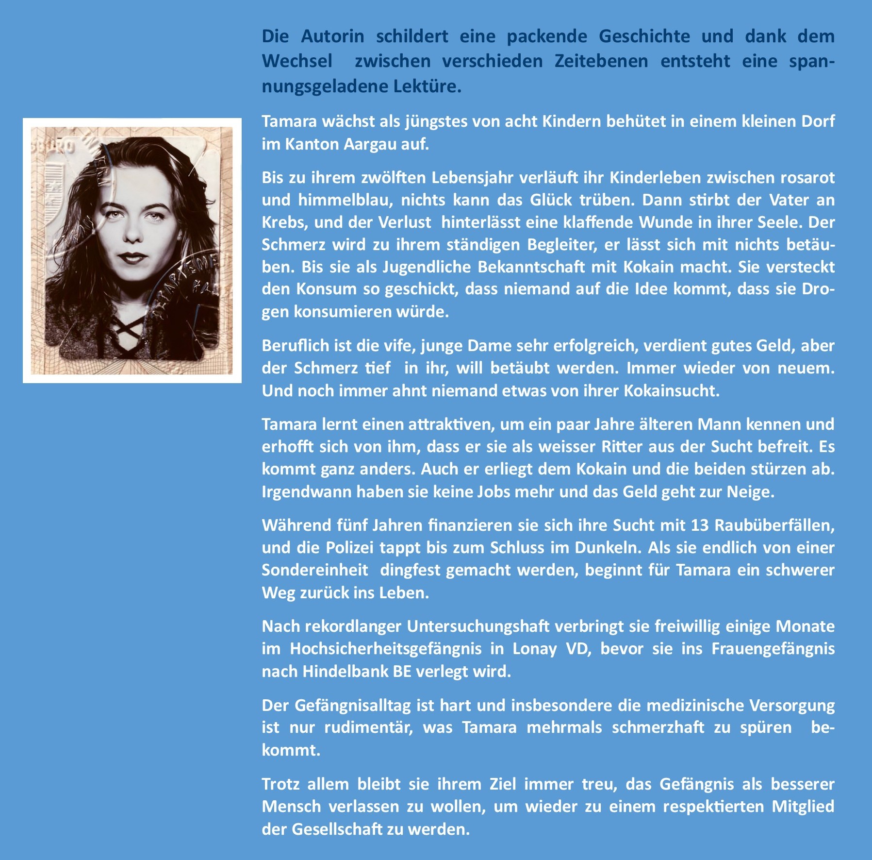 Die Geschichte von Tamara kann als wirkungsvolles Projekt in der Drogenprävention eingesetzt werden. Die Autorin möchte mithelfen, dass ihre Geschichte möglichst viele Jugendliche davon abhalten kann, mit Drogen in Kontakt zu kommen.